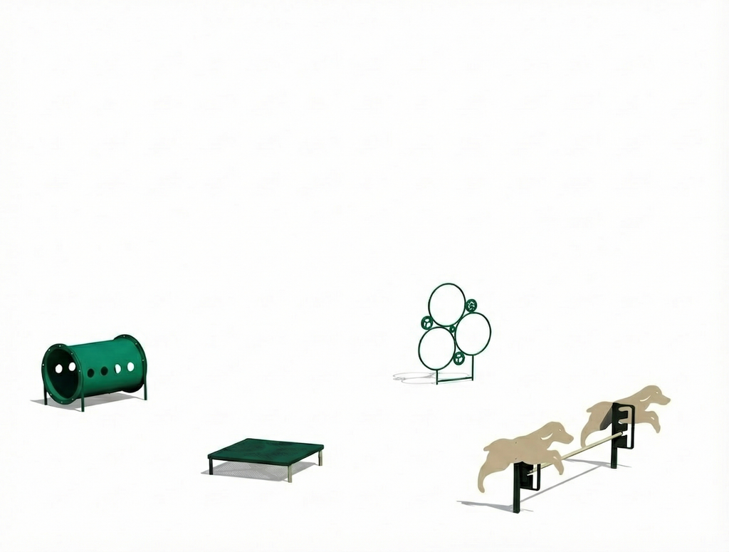 This beginner course includes four (4) exciting and fun components that can be used intuitively by most dogs. This equipment is a best bet for drawing new and returning visitors to the dog park!