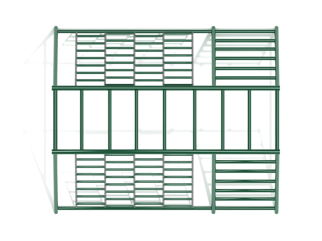 - Decks and platforms (if shown) are made from PVC-coated perforated steel
