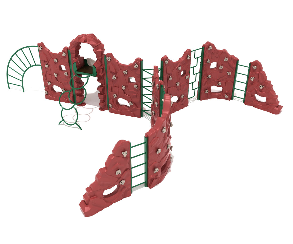 Meet the Craggy Crest Climber, a playground hero that turns open space into a kid-powered adventure course. Its sculpted rock panels, varied climbing holds, and mix of straight and curved ladders invite route planning, problem solving, and nonstop movement, capped off with a swooping slide that rewards every ascent.
