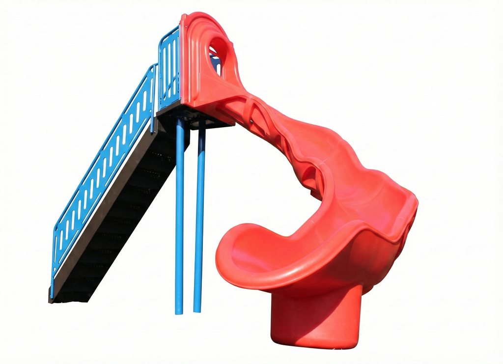 The slide itself is constructed of heavy duty high-impact polyethylene with UV stabilizers added to maintain color integrity. The slide utilizes a roto-molded plastic that is extremely durable and stands up to time. This technology will ensure that this slide structure will hold up to years of hard play.