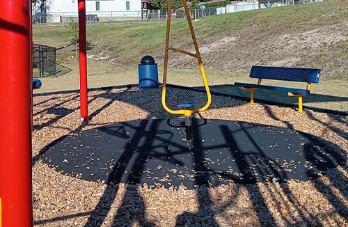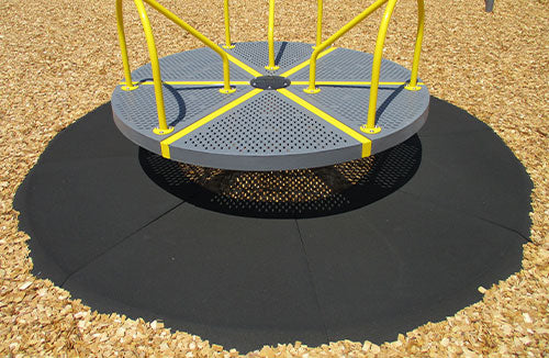 Built for slightly larger spinner zones, the playground wear mat offers expanded coverage and a secure surface and is as tough as it is tidy. A flush center plug ensures a seamless play area, while the thick rubber base resists shifting and wear from all the jumping, spinning, and dashing kids can throw at it. Its beveled perimeter blends effortlessly with existing surfacing, delivering both safety and style in one smart package.