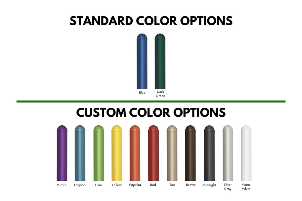 Available in vibrant standard colors of blue and green, this swing set also offers custom color options for those seeking a more personalized touch, subject to a longer lead time. Its powder-coated finish not only adds to its aesthetic appeal but also provides an extra layer of protection against the elements.