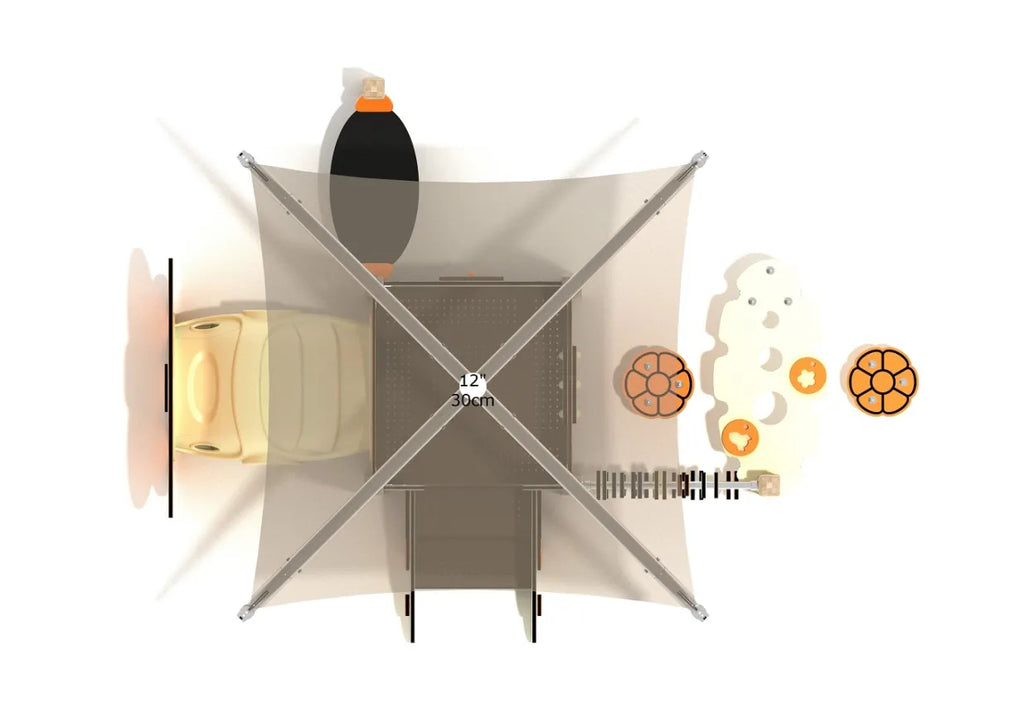 - Must be installed over compliant safety surfacing (e.g., engineered wood fiber, rubber mulch, poured rubber, turf)