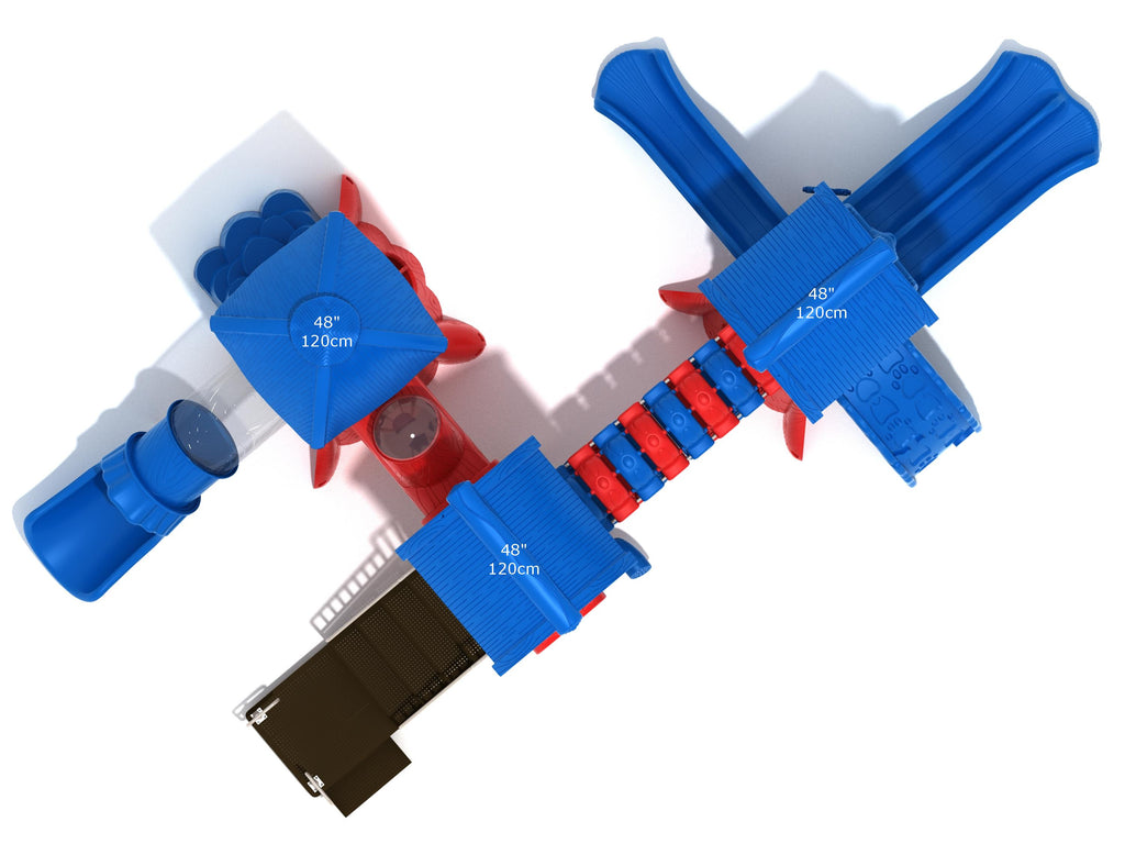 - Must be installed over compliant safety surfacing (e.g., engineered wood fiber, rubber mulch, poured rubber, turf)