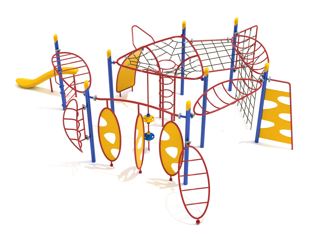 - Must be installed over compliant safety surfacing (e.g., engineered wood fiber, rubber mulch, poured rubber, turf)