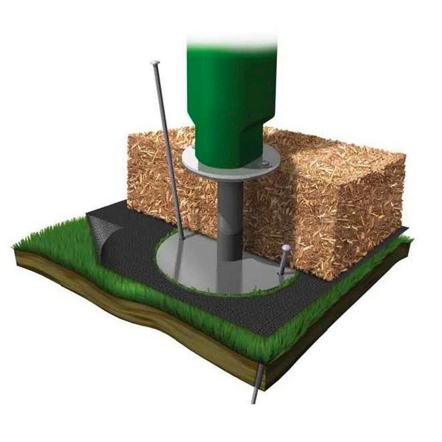 • Ground Spike is the easiest ground attachment method where you use a sledgehammer to drive stakes through a footer plate to secure the poses in the location of your choice.  This method is not recommended for sandy or loamy soil conditions and is only offered for a limited number of sets.