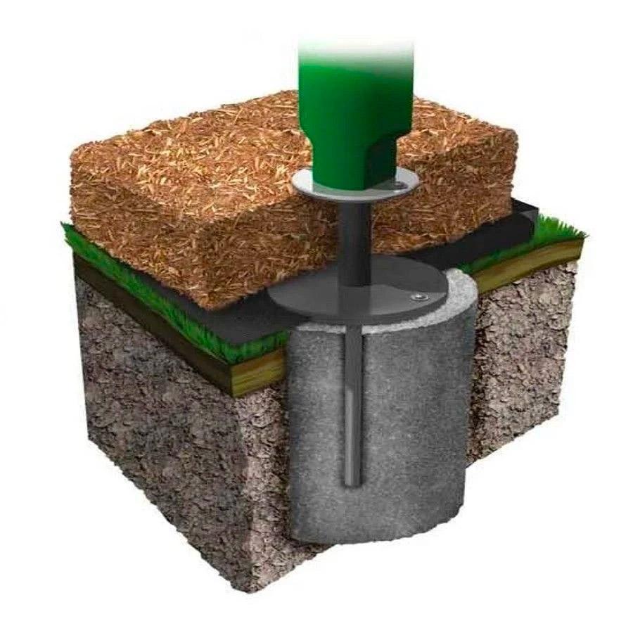• In-Ground Mounting is the most common method for playground and shade equipment attachment.  This method requires digging and setting the post in concrete poured at the time of installation.